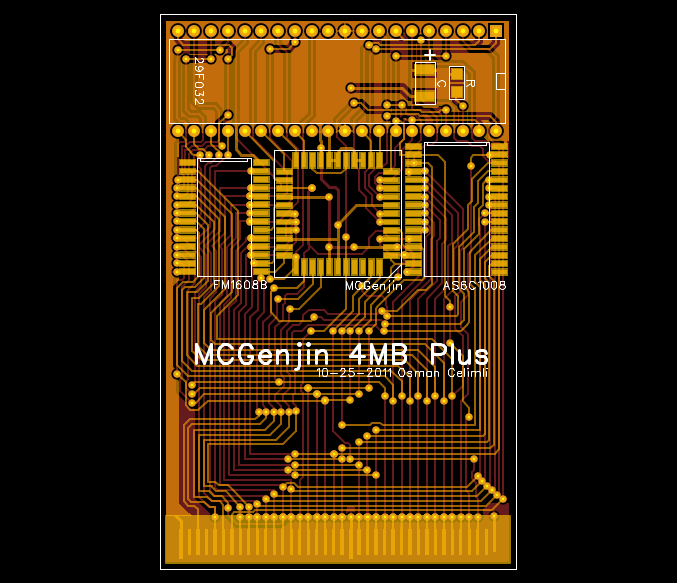 PCB Layout. Note the TSOP-II SRAMs must have pins 7, 8, 15, 16, 29, 30,